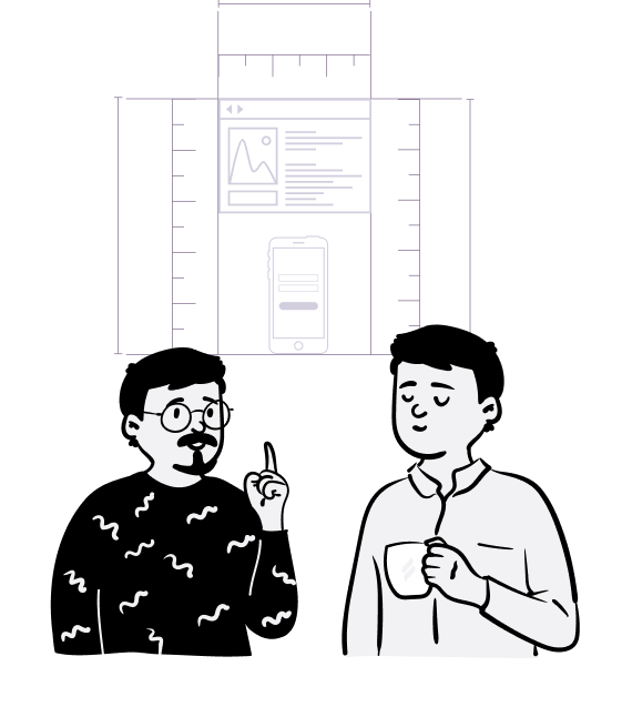 Um papo para entender melhor sua necessidade, deadline, budget e business goals; Com isso criamos um mapeamento geral do seu produto.
